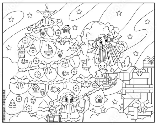 Fototapeta premium Christmas coloring book. Coloring book with Santa Claus and Christmas tree. Santa Claus. children's coloring book.