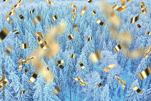 Fototapeta premium christmas confetti holiday background, winter landscape outdoor, new year