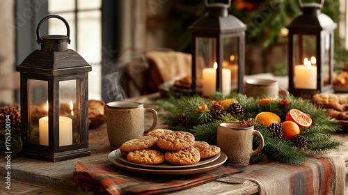 Fototapeta premium Christmas Cookies, Candles, And Holiday Table