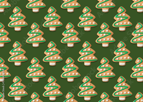 © New Africa, Obraz premium Christmas cookies on green background, top view. Pattern design