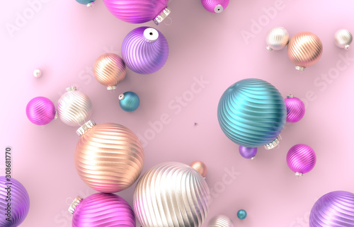 Fototapeta premium Christmas 3d decoration with Christmas ball on pink background. Christmas,...
