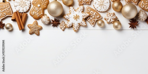 Naklejka premium Christmas Decor with Gingerbread Cookies and Ornaments
