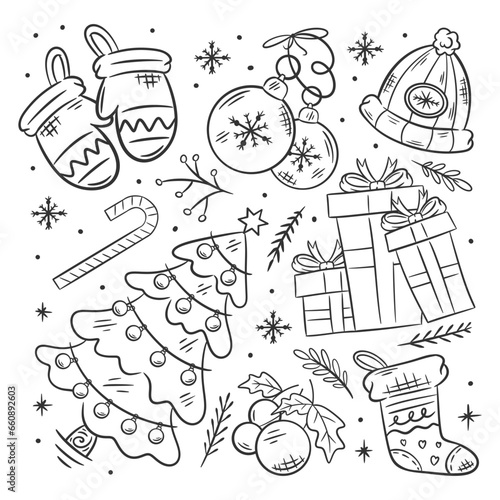 © vectorart, Obraz premium Christmas decoration element hand drawn coloring