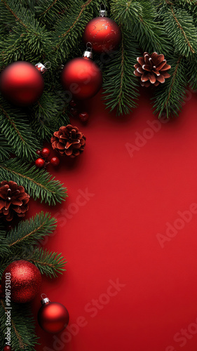 © Agnieszka, Fototapeta premium Christmas Decorations on Red Flat Lay