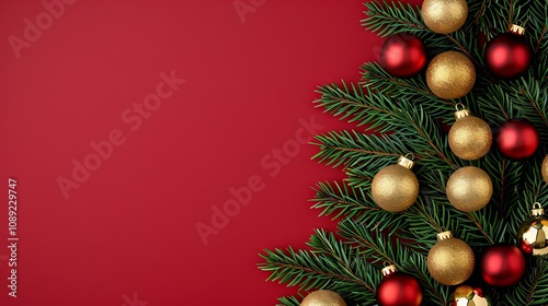 Fototapeta premium Christmas decorations with ornaments and pine branches.