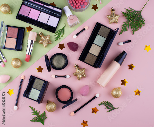 Fototapeta premium Christmas decorative make up cosmetics.
