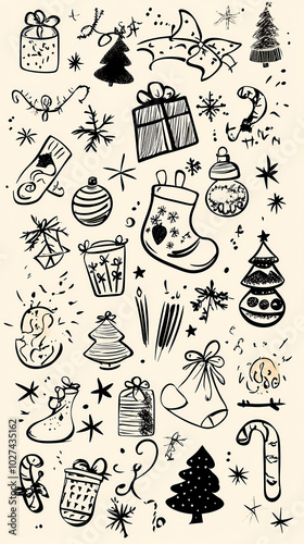Obraz premium Christmas design elements - doodle xmas symbols vector image