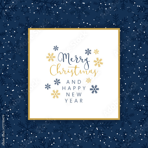 Fototapeta premium Christmas design with a blue background with snowflakes and greetings