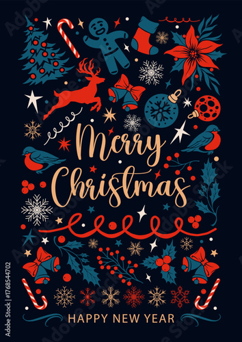 © DGIM studio, Obraz premium Christmas design with holiday symbols