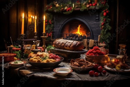 © Rawpixel.com, Naklejka premium Christmas dinner fireplace food meal.