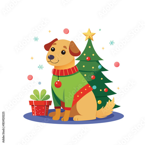 © SyedaNezun, Naklejka premium christmas dog and gift box