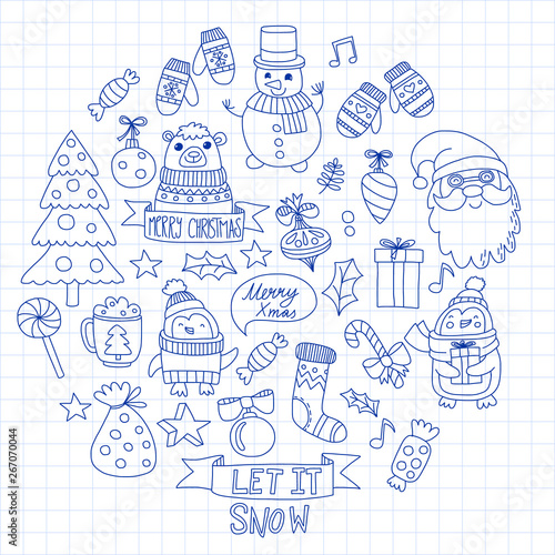 © rudut2015, Fototapeta premium Christmas element in doodle kids drawing style. Vector pattern.