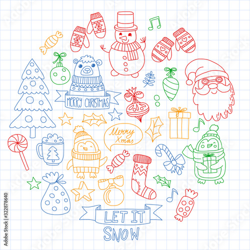 © rudut2015, Fototapeta premium Christmas element in doodle kids drawing style. Vector pattern.