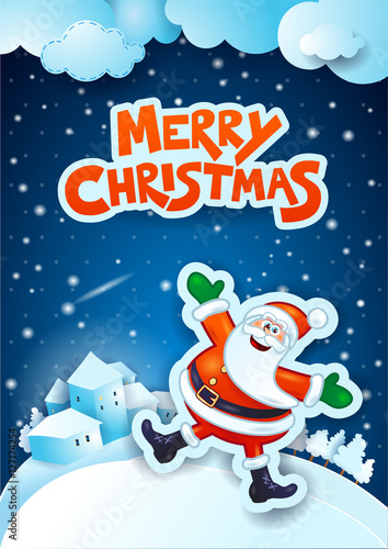 Fototapeta premium Christmas eve with happy Santa Claus and text
