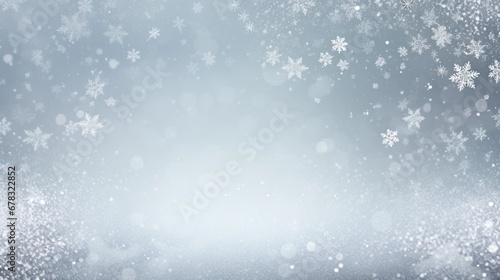 Fototapeta premium Christmas falling snow or snowflakes silver background