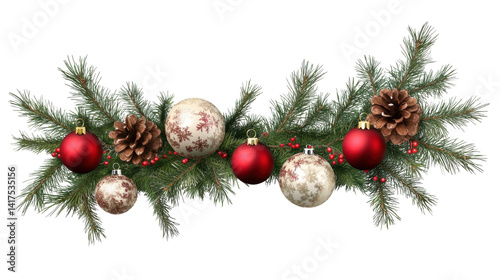 © Muhammad, Fototapeta premium Christmas fir branch with xmas decoration ball on white background