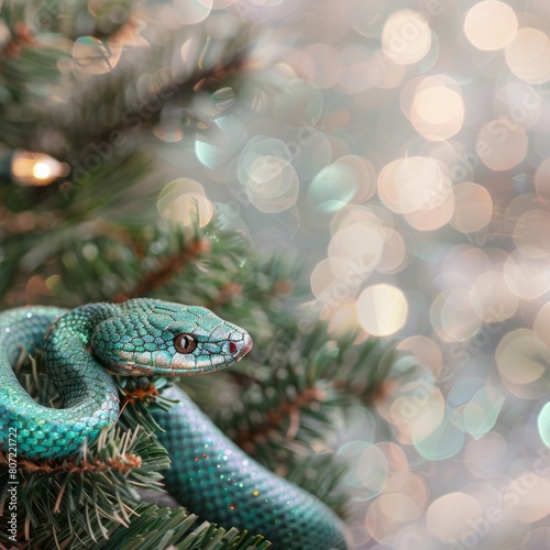 Fototapeta premium Christmas fir branches and a green snake.