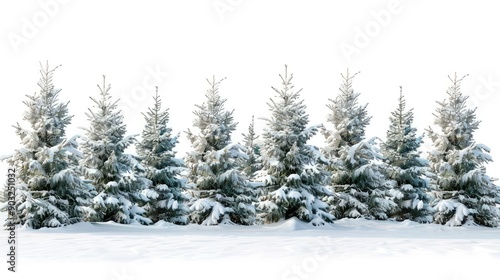 © Rufat, Naklejka premium Christmas Fir Brnaches with Snow isolated on white Background Super Wide Panorama