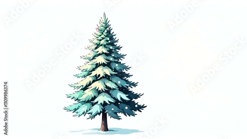 © Alteisen Riese, Obraz premium Christmas fir tree isolated on a white background with space for text. Watercolor style