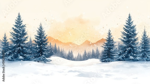 © NhV, Naklejka premium christmas fir trees in the snow winter landscape illustration