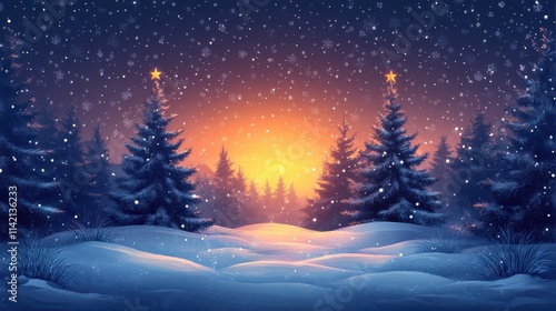 Fototapeta premium christmas fir trees in the snow winter landscape illustration