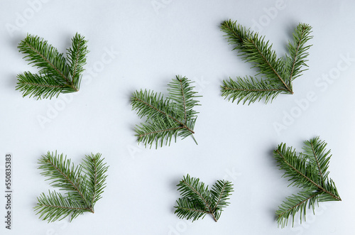 © Max, Obraz premium Christmas fletlay from spruce twigs on a white background