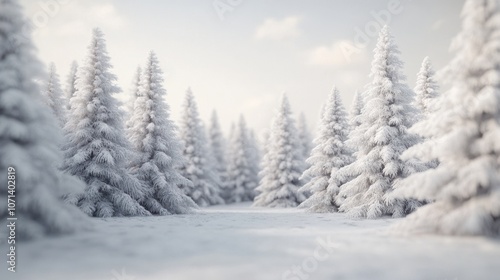 Fototapeta premium Christmas forest with snow, featuring frosty trees in a serene winter setting, ideal for holiday visuals.