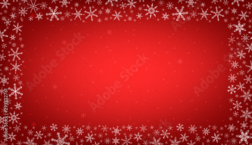 © zuzz, Fototapeta premium Christmas frame background in bright red color with big and small snowflakes