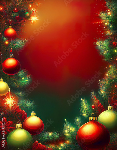 © Gabriella88, Fototapeta premium Christmas frames in different colors with Christmas tree balls, Christmas landscape, in a modern and romantic look