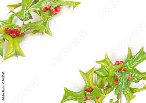 © Santorini, Naklejka premium Christmas framework with holly berry isolated