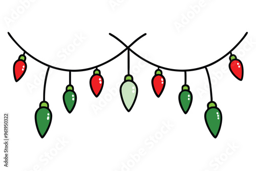 © Abdus Salam, Fototapeta premium Christmas garland with lights vector line art, clipart illustration with isolated on white background