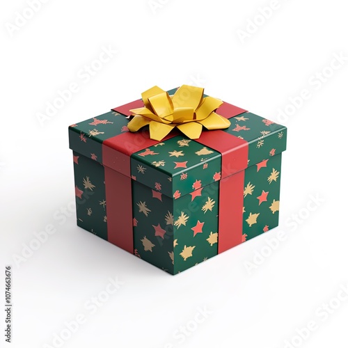 © Spikie, Fototapeta premium Christmas gift box on white background side view