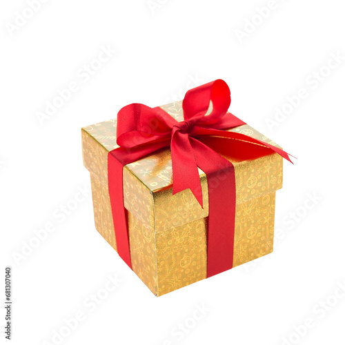 © Hendrikus, Fototapeta premium Christmas gift box with red tie transparent background.