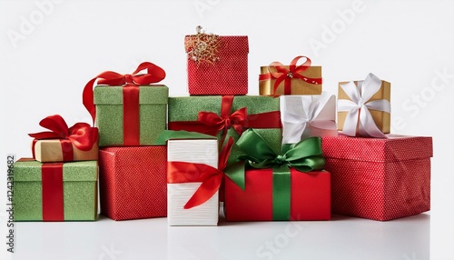 © Rahmat , Obraz premium Christmas gift boxes and decorations. Chistmas gift boxes, isolated white background