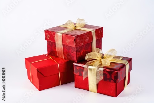 Fototapeta premium Christmas gift boxes on white background. Generative AI