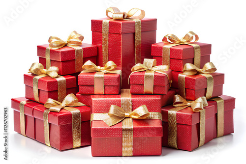 Obraz premium Christmas gift boxes with gold ribbon on isolated white background, Clipping...