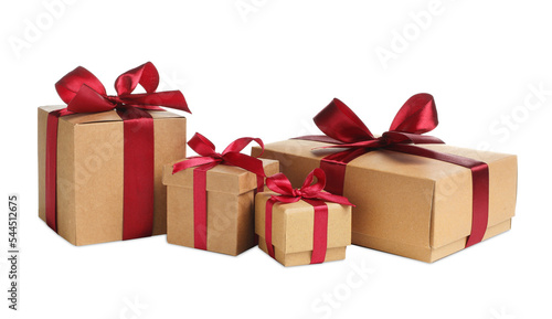 © New Africa, Obraz premium Christmas gift. Kraft boxes on white background