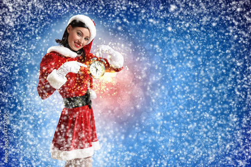 © Sergey Nivens, Fototapeta premium christmas girl in santa hat