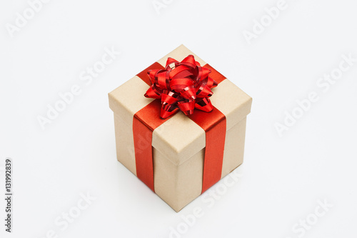 © papii, Fototapeta premium Christmas gold gift box on white background