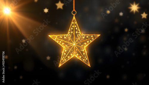 Fototapeta premium Christmas Golden Star In Shiny Night isolated with white highlights, png