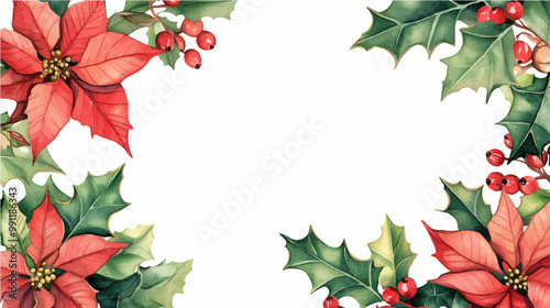 © Rimsky, Fototapeta premium christmas greeting card template with watercolor holly branches and berries
