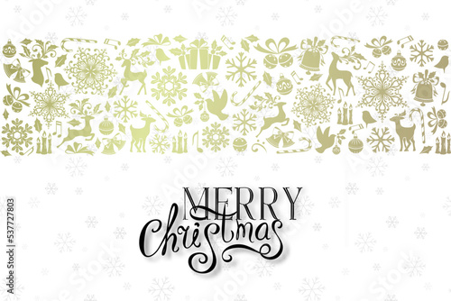 Fototapeta premium Christmas greeting card with golden ornamental border