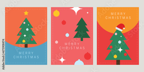 Fototapeta premium christmas greeting cards design with simple geometric christmas tree christmas festival seasonal