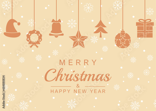 © Akhmad, Fototapeta premium Christmas greeting cards with various icons such as hats, bells, trees, snow, stars gifts, balls. vector design for poster, banner, social media, web.