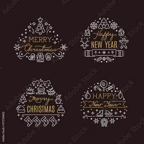 Obraz premium Christmas holiday decorative vector emblems with winter festive xmas line...