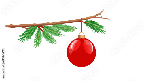 © Husnain, Fototapeta premium Christmas holiday ornament on pine tree branch decoration festive season celebration vector illustration