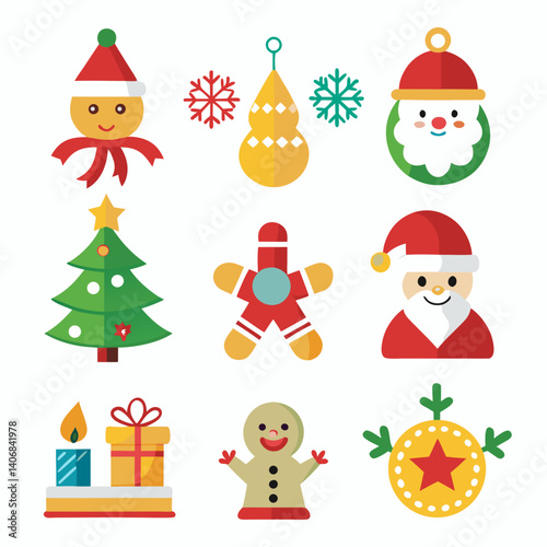 Fototapeta premium Christmas Holiday Vector Icons Collection in Bright Colors