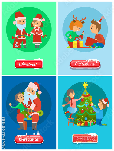 Fototapeta premium Christmas Holidays, Santa Claus and Snow Maiden