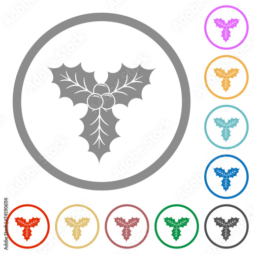 Fototapeta premium Christmas holly with berries flat icons with outlines