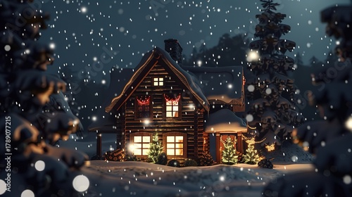 Fototapeta premium Christmas_house_with_snow_falling_at_night